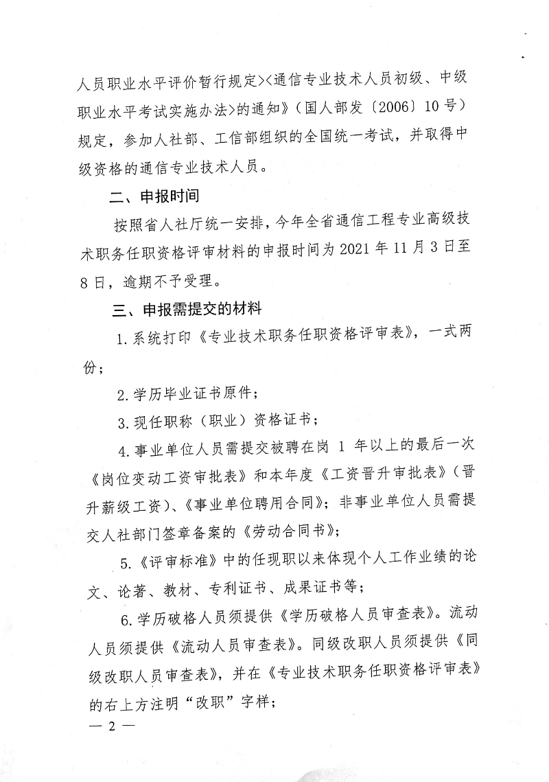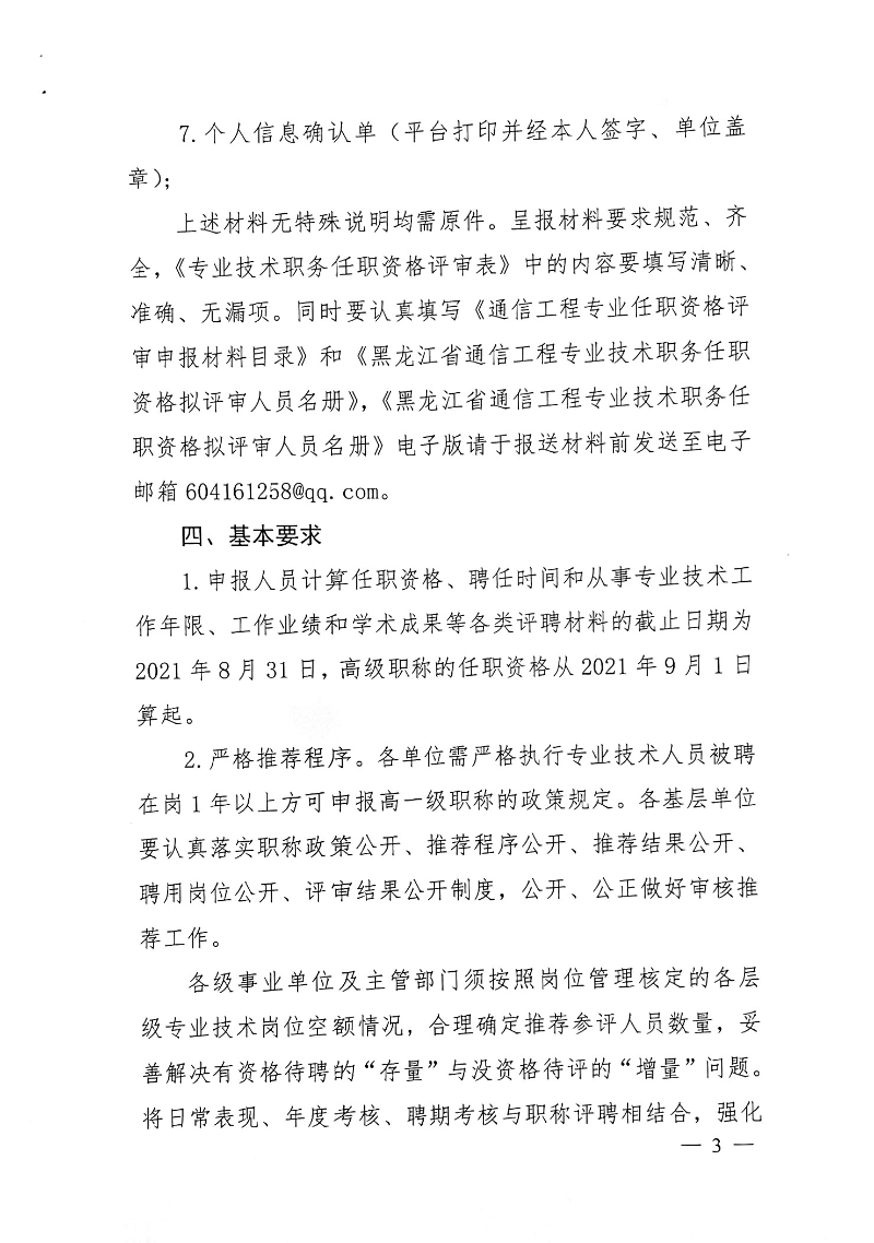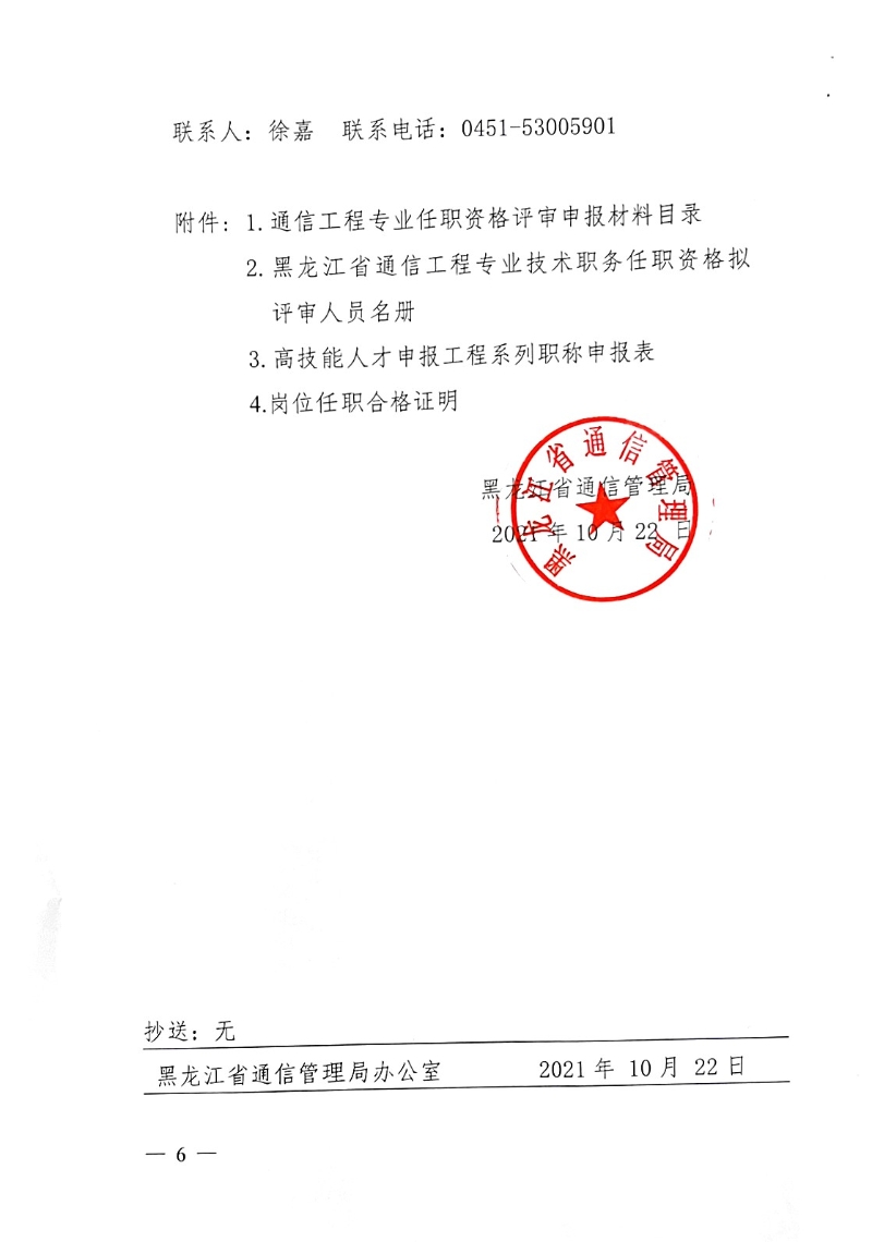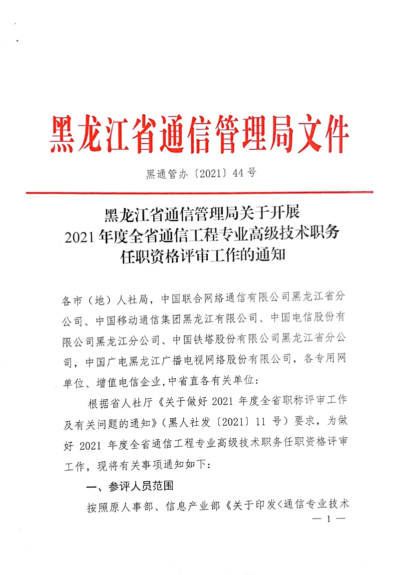 黑龙江省通信管理局关于开展2021年度全省通信工程专业高级技术职务任职资格评审工作的通知