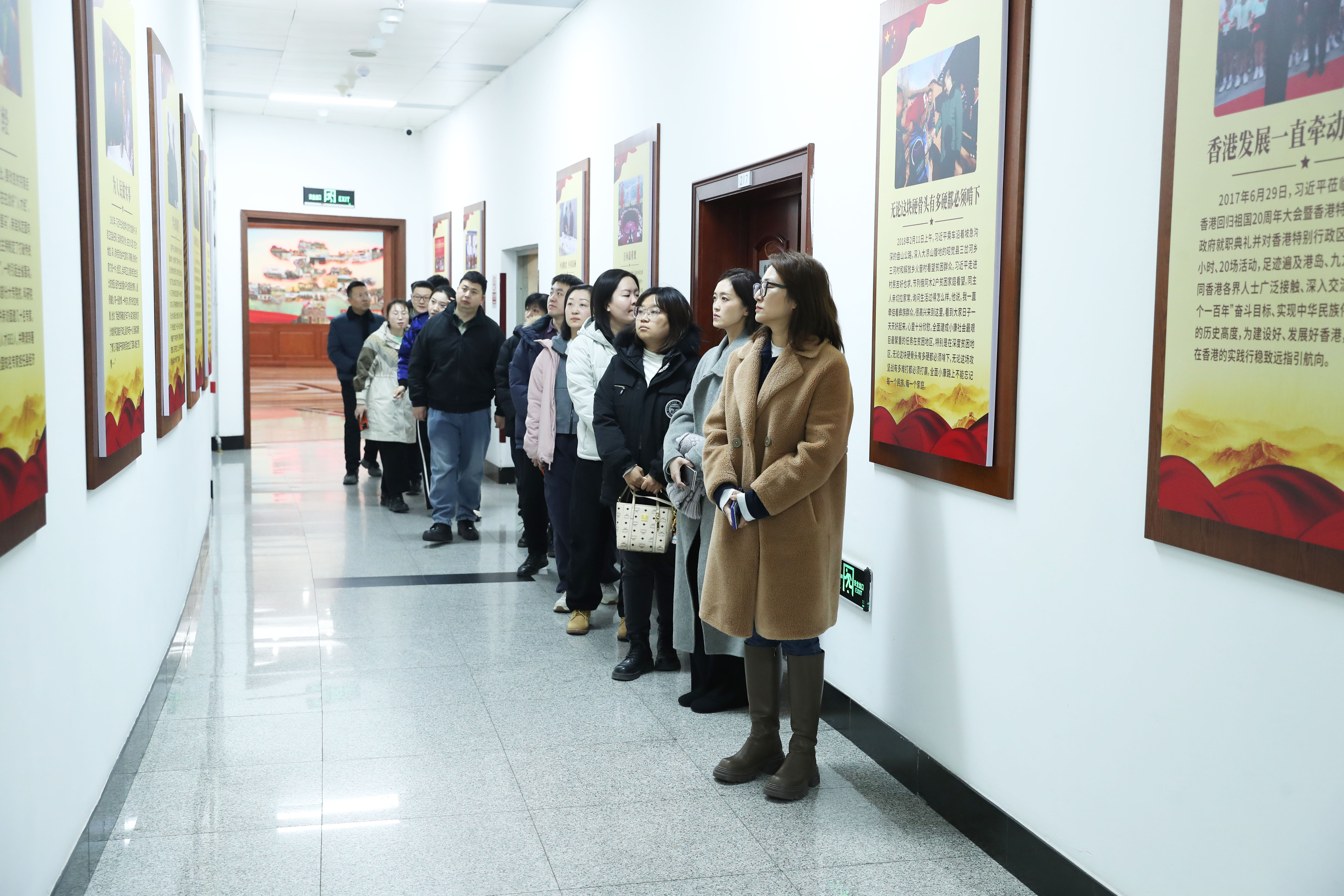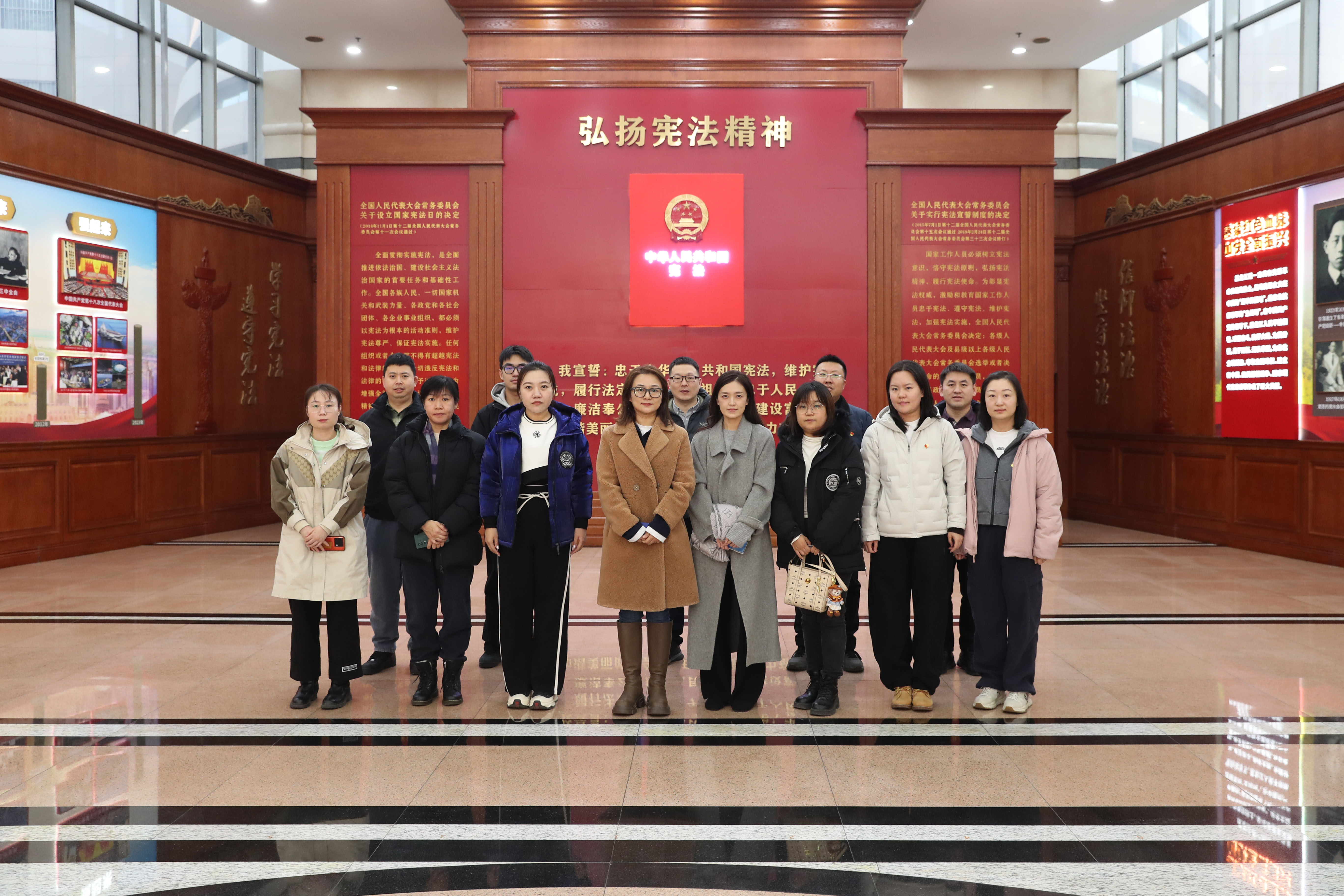 在局机关党委专职副书记李婉婷的带领下,一行人先后参观了党建大厅、领袖故事长廊、科技法庭等场所。在“追寻光辉足迹”主题展板前,大家深入学习了党的法治建设历程与“司法为民”的实践精神;在科技法庭,通过角色扮演模拟庭审,亲身体验了法律程序的严谨与公正。此次活动将“法治”与“廉洁”主题教育深度融合,让参与者在耳濡目染中接受思想洗礼。