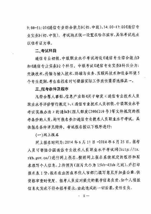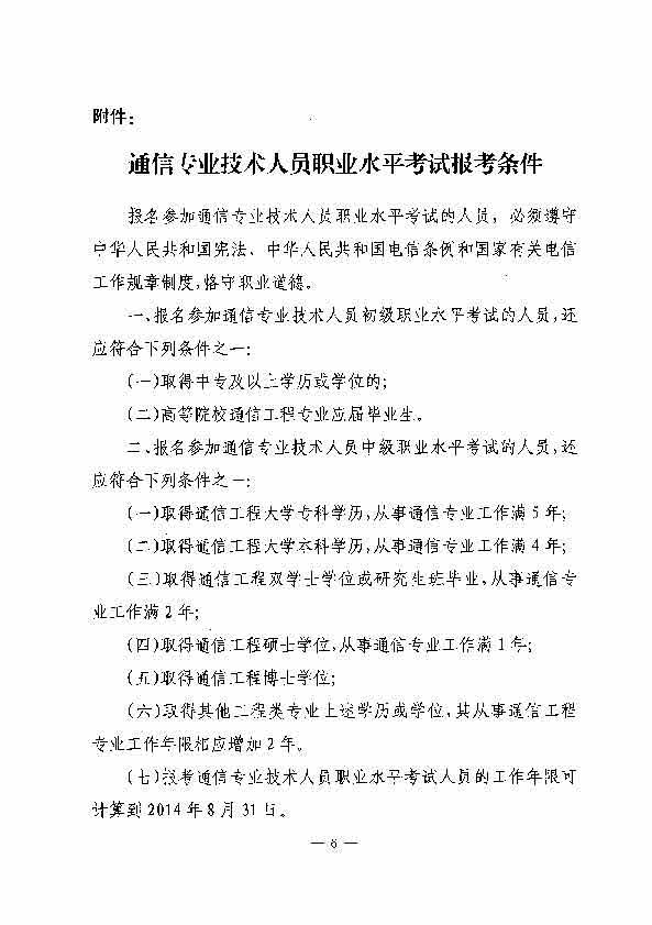 2014年通信专业技术人员初级和中级报考条件及程序