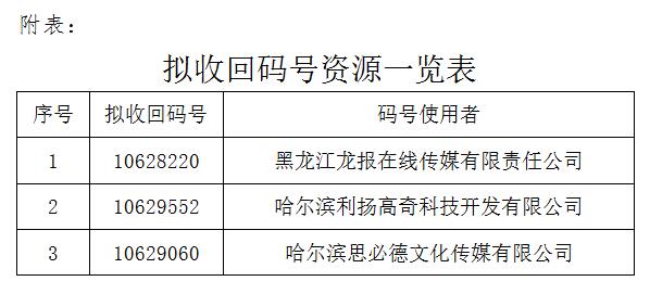 公示时间:2016年12月1日至2016年12月31日,共30天。公示期满后我局将正式收回相关码号资源,欢迎社会各界监督并提出意见。