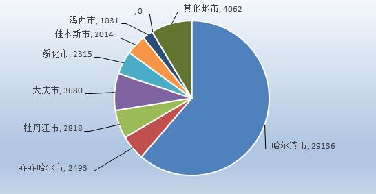(三)网站分布情况。按主体所在地统计,已备案网站数量达到2000个以上的有六个地市,依次是哈尔滨29136个,大庆3680个,牡丹江2818个,齐齐哈尔2493个,绥化2315个,佳木斯2014个。